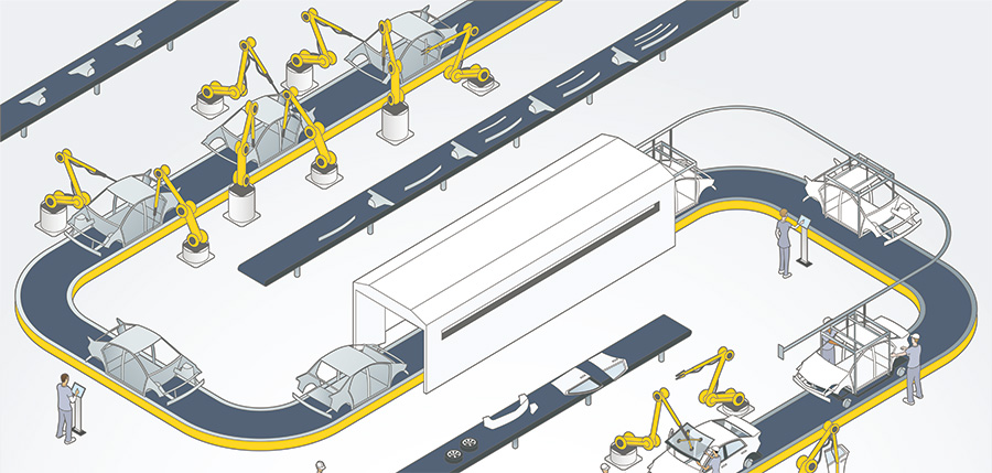 智昌集團(tuán)通過自主研發(fā)的三元控制技術(shù),面向機(jī)器人智能互聯(lián)、協(xié)同融合和群體智能控制,使得自動(dòng)化裝配線配置產(chǎn)線控制系統(tǒng)LCS和智能化快速換模系統(tǒng),可與MES/ERP系統(tǒng)有效集成,實(shí)現(xiàn)生產(chǎn)計(jì)劃生產(chǎn)指令直接下達(dá)到裝配線,裝配線自動(dòng)調(diào)用不同產(chǎn)品的控制程序和對(duì)應(yīng)的工裝,實(shí)現(xiàn)多種產(chǎn)品混線生產(chǎn)。采用3D視覺高精度定位算法、3D視覺高精度糾偏算法等技術(shù),能夠?qū)Χ嗥奉悺o序來料的汽車零部件精準(zhǔn)識(shí)別抓取及高精度糾偏裝配。同時(shí),裝配線通過LCS系統(tǒng),可實(shí)時(shí)將生產(chǎn)進(jìn)度及設(shè)備狀態(tài)信息上傳到MES系統(tǒng),實(shí)現(xiàn)閉環(huán)管理。